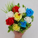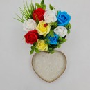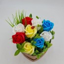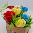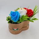 Virágkompozíció rózsákból 'Virágos kerékpár', szappanvirágok, Dalimag, 30x17x15 cm