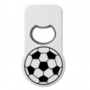 Ez a focis mintás üvegnyitó mágnessel praktikus és hasznos kiegészítő a focisok számára és nem csak nekik. A 9,5x5x0,5 cm-es kompakt méretének köszönhetően ez az üvegnyitó könnyen szállítható és tárolható a zsebedben vagy a táskádban.