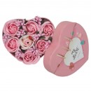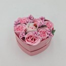 Aranjament Floral, Cutie Trandafiri, 4 Trandafiri Roz din Sapun si unul Alb