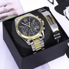 Set de Ceas si bratara, Pentru Femei si Barbati, Argintiu, Auriu